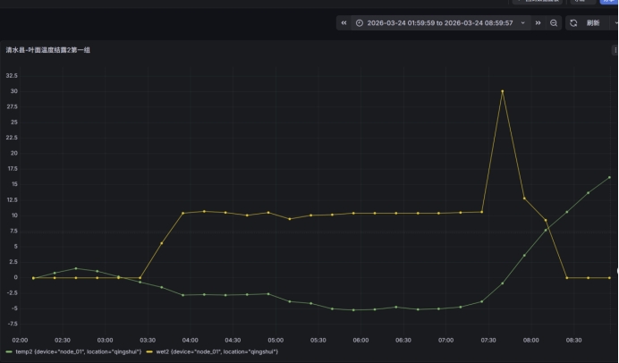 本装置可以精准感知叶片温度与结露时间,用于病害发生环境监测、生育期预测、霜冻监测等领域。